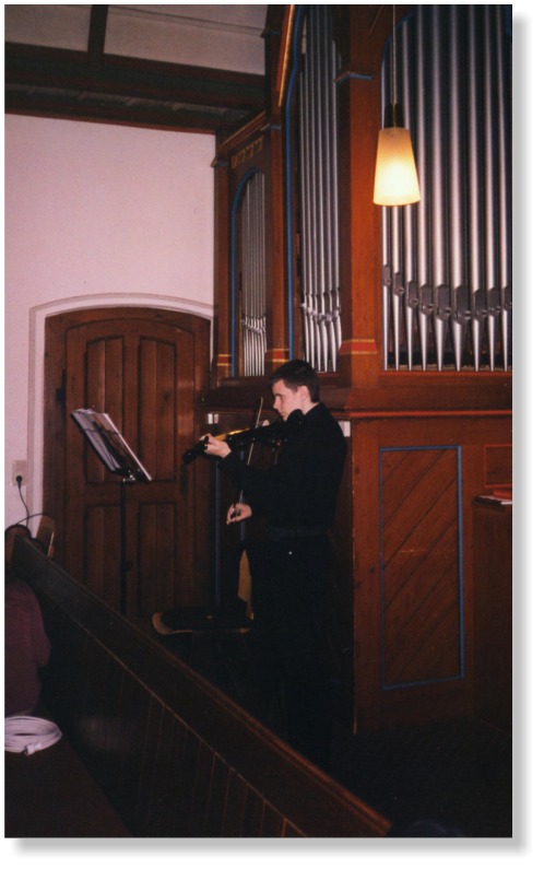 Noch während der Grundschule - in der 4. Klasse - habe ich im Nachbardorf in der Kirche einen Jungen Geige spielen