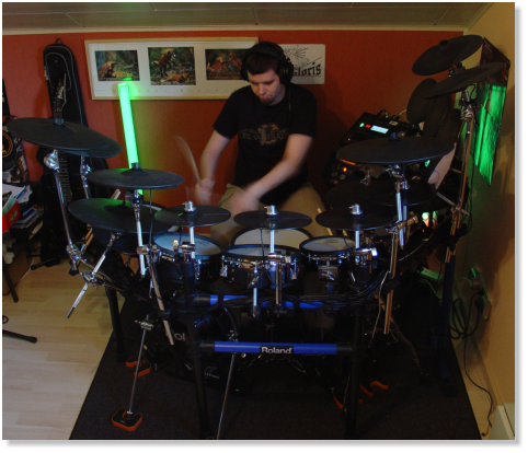 mir fast alles am Schlagzeug selbst beigebracht. Von 2005 bis 2006 hatte ich ein Jahr Schlagzeug-Unterricht in der Modern Music School um meine Technik etwas auszufeilen. Nach und nach habe ich mein Kit um einige Komponenten erweitert.