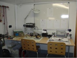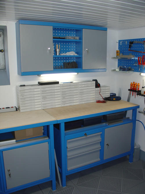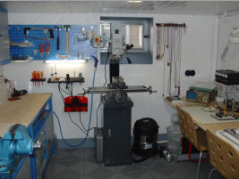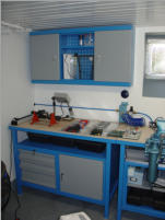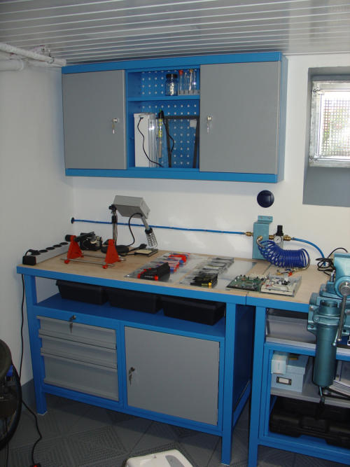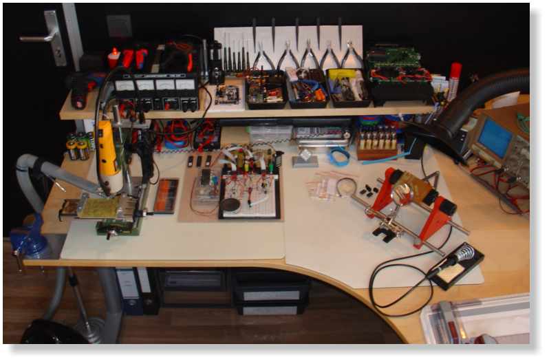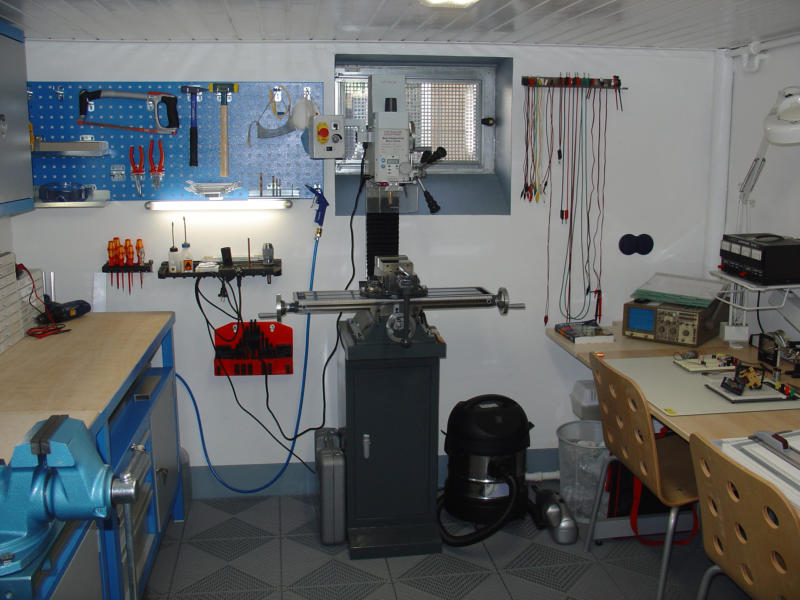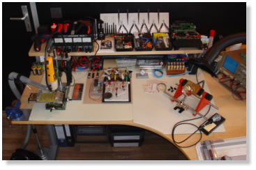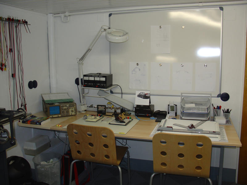 Mittlerweile habe ich nicht nur die Werkstatt im Keller, sondern auch ein großes Büro im 1.Stock unseres Hauses, in dem ich jetzt die Konstruktion und Entwicklung sowie Montage kleinerer Komponenten, Lötarbeiten (mit einer professionellen Lötrauch-Absaugung) und Tests durchführe.