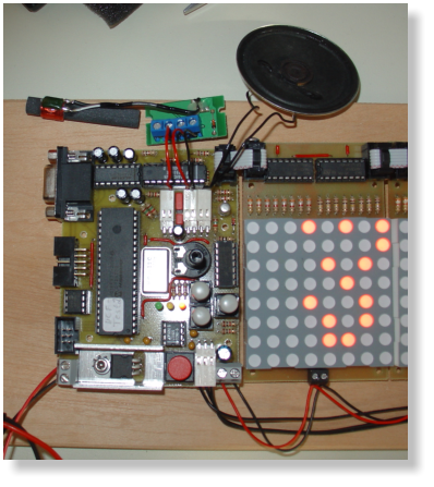 Weiterhin soll die Einstellung von mindestens 5 Weckzeiten mit wählbarer Melodie und individuell einstellbarem Alarm-Text auf der LED-Matrix möglich sein.