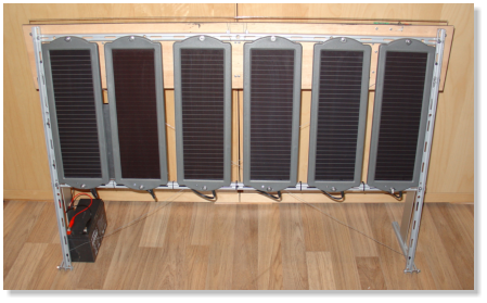 können. Aber ich hatte schon seit längerem eine kleine Solaranlage im Fenster stehen, die noch keine richtige Verwendung gefunden hatte. Die Solarzellen habe ich mal günstig gekauft. Sie sind eigentlich dafür gedacht, die Autobatterie über den Zigarettenanzünder zu laden bzw. vor Entladung zu schützen. Jede der 6