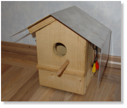 eine Plexiglas-Scheibe getrennt. Etwa drei Jahre lang lag das fertige Vogelhäuschen dann im Keller, weil